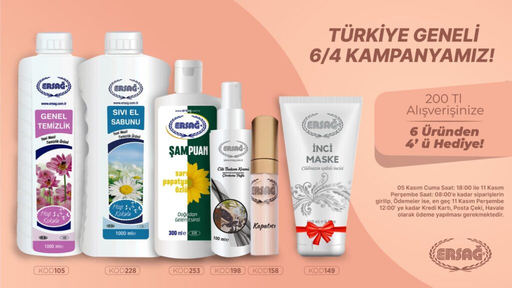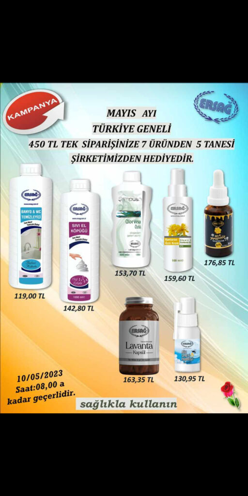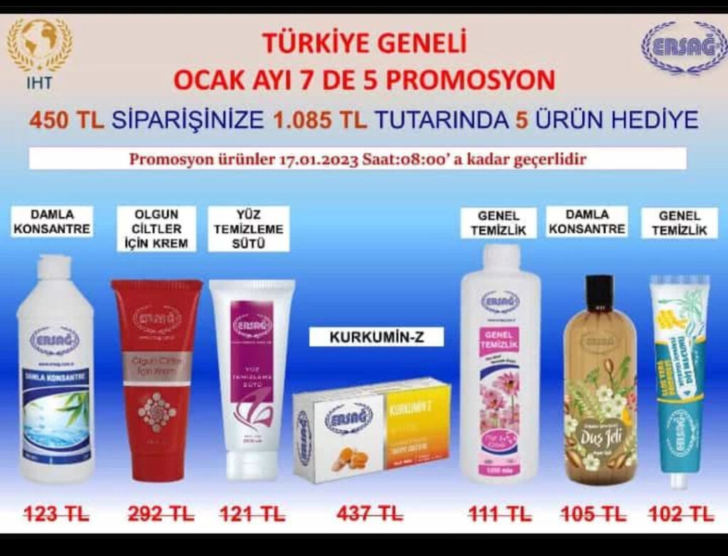 Ersağ Türkiye Mayıs Ayı Kampanyası Promosyonu. Ersağ 100 TL siparişinize 1 ürün, 200 TL siparişinize 5 ürün HEDİYE’dir. Promosyon ürünler 14.05.2019 Saat:23:59’a kadar geçerlidir. Hemen Ersağ Üye Ol kısmından formu doldurup Ersağ ailesine katılabilirsiniz. Ersağ a Üyelik yaparak çok daha avantajlı ürünler alıp sizde yararlanabilirsiniz. Ersağ da üyelik aidatı, 3 ay , 5 ay gibi süre ile sipariş verme zorunluluğu yoktur. Ersağ a Üye olan bir kimse kendi ihtiyacını gidermek için veya satış yapmak için de olabilir. Ailenizle birlikte sağlıklı bir yaşam için hemen Ersağ a üye ol un kazançlı çıkın.