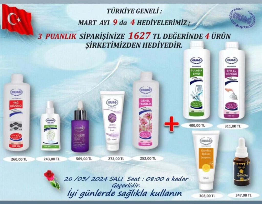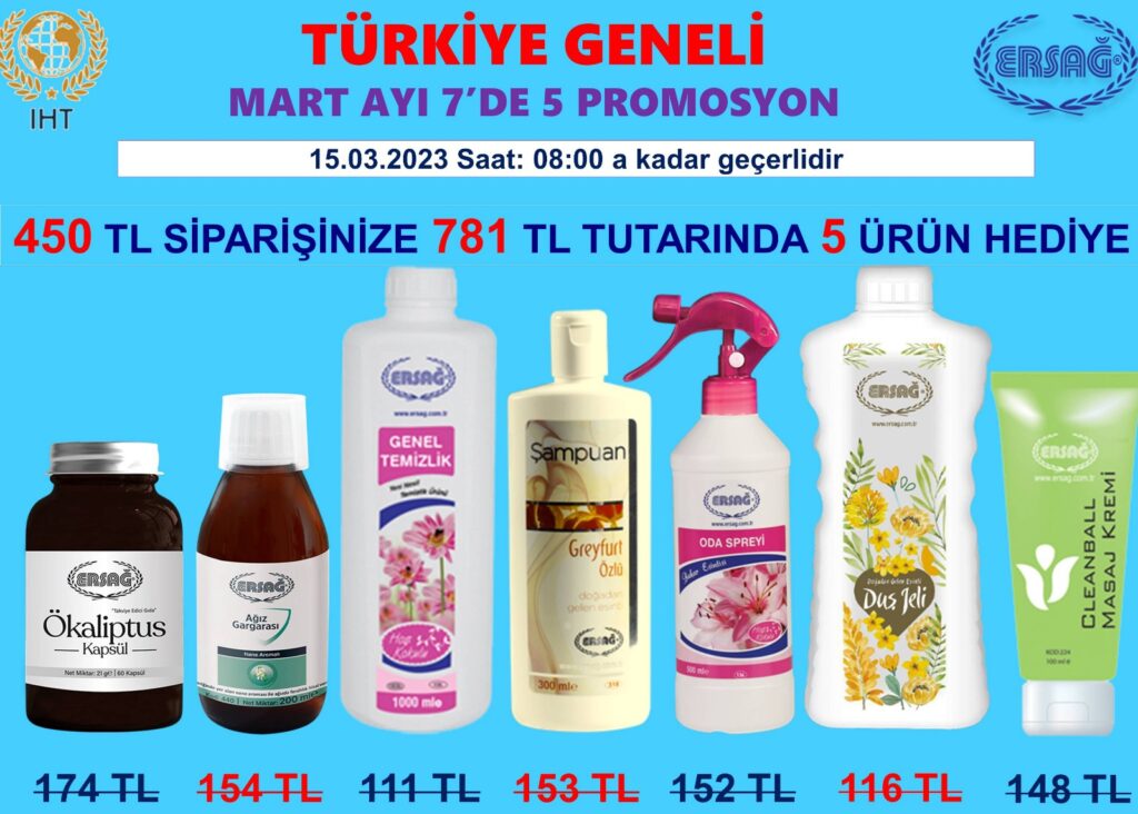Ersağ Türkiye Mart Ayı Kampanyası Promosyonu. Ersağ 100 TL siparişinize 1 ürün, 200 TL siparişinize 4 ürün HEDİYE’dir. Promosyon ürünler 25.03.2019 Saat:23:59’a kadar geçerlidir. Hemen Ersağ Üye Ol kısmından formu doldurup Ersağ ailesine katılabilirsiniz. Ersağ a Üyelik yaparak çok daha avantajlı ürünler alıp sizde yararlanabilirsiniz. Ersağ da üyelik aidatı, 3 ay , 5 ay gibi süre ile sipariş verme zorunluluğu yoktur. Ersağ a Üye olan bir kimse kendi ihtiyacını gidermek için veya satış yapmak için de olabilir. Ailenizle birlikte sağlıklı bir yaşam için hemen Ersağ a üye ol un kazançlı çıkın.