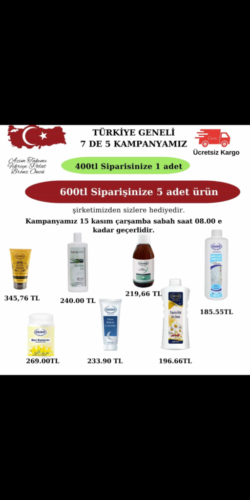 TÜRKİYE GENELİ KAMPANYAMIZ, 06 Ekim Cumartei Günü Saat: 18:30 da başlayıp 09 Ekim Salı günü Saat:23:59 a kadar 200 TL LİK TEK SİPARİŞE 7 PROMOSYONDAN 5 tanesi HEDİYE